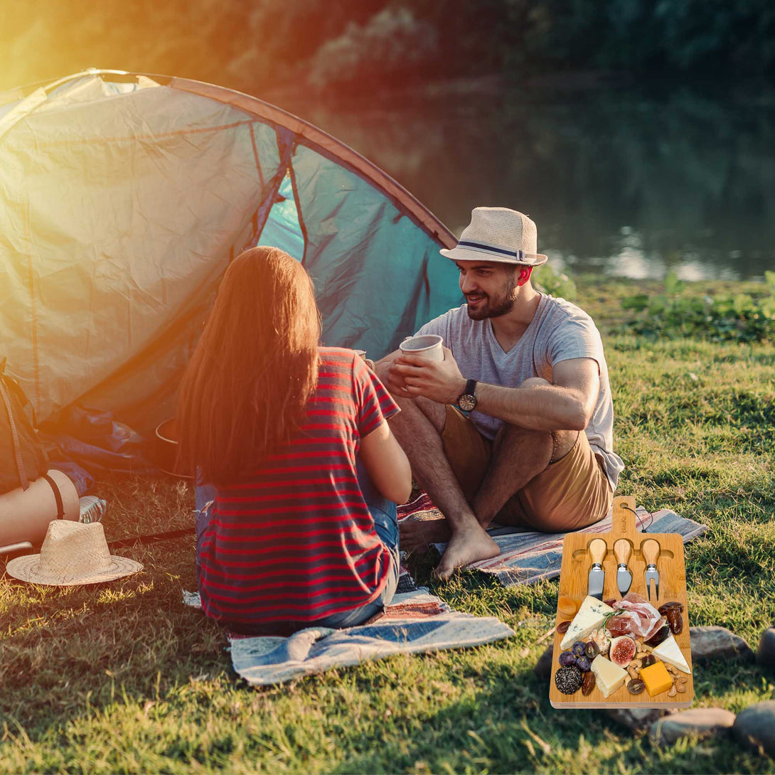 Chi dice che il campeggio non può essere di classe? Questo è un set da picnic perfetto. Godetevi i semplici piaceri del formaggio e dei salumi mentre vi crogiolate nella bellezza della natura.